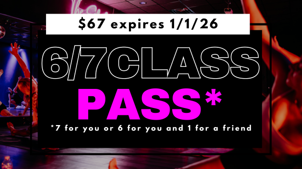 Get 7 classes for $67! Use them all yourself or use 6 and bring a friend with the 7th — because everything’s better when you sweat together.